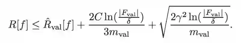 K Kawaguchi,LP Kaelbling 和 Y Bengio 最近提出了一个更为有用的方法。不同于其他人,他们承认深度学习模型通常是使用训练—验证范式进行训练的这一事实。他们通过验证错误而非训练错误来限制不可计算的期望风险。基于这些观点,他们回答了为什么深度学习在实际应用中的泛化能力很好:“我们的模型具有很好的泛化能力,是因为我们可以通过带有验证错误的模型搜索来获得一个好的模型”。并且证明以下的界限,对于任意,下式至少有 的概率成立。