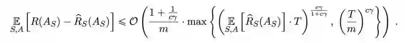 其中是训练集的大小,是训练步数,表示初始点曲率如何影响稳定性。这就引出了至少两个结论。首先,围绕初始点(initialization point)的目标函数的曲率具有决定性的影响。从更为平缓有较低风险区域的一个点开始,应该会产生更高的稳定性,即更快的泛化。在实践中选择初始化参数时,这会是一个很好的预筛选策略。其次,考虑到全面通过,即,我们将界限简化为。也就有了更大的训练集,而更小的泛化能力降低。