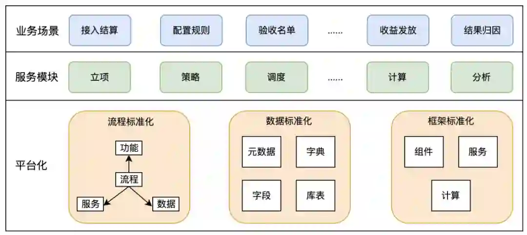 然而只有先做到标准化,平台才能顺利的运转起来,因此在平台化启动前,我们对业务进行了梳理和抽象,从下面三个方面进行标准化建设。