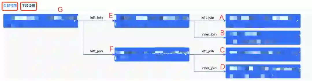 create table T asselectG. 字段, E. 字段, A. 字段, B. 字段,F. 字段, C. 字段, D. 字段, 衍生字段 1, 衍生字段 2, 衍生字段 1, 衍生字段 2from(selectG. 字段, E. 字段, A. 字段, B. 字段,F. 字段, C. 字段, D. 字段, 衍生字段 1, 衍生字段 2fromG left join(selectE. 字段, A. 字段, B. 字段fromE left join A on E.* = A.*join B on E.* = B.*) E' on G. 字段 = E'. 字段left join(selectF. 字段, C. 字段, D. 字段fromF left join C on F.* = C.*join D on F.* = D.*) F' on G. 字段 = F'. 字段) tmpgroup byG. 字段, E. 字段, A. 字段, B. 字段,F. 字段, C. 字段, D. 字段, 衍生字段 1, 衍生字段 2