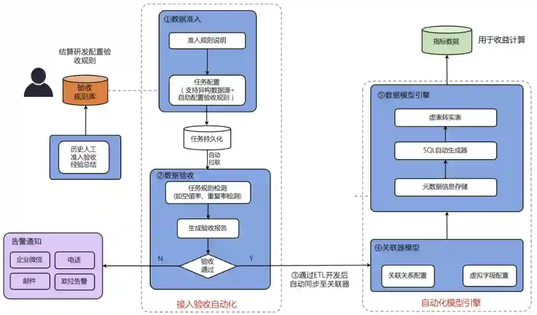 数据接入和数据模型一起构成了数据自动化模块,只需通过平台操作就行,整体流程如下图所示:
