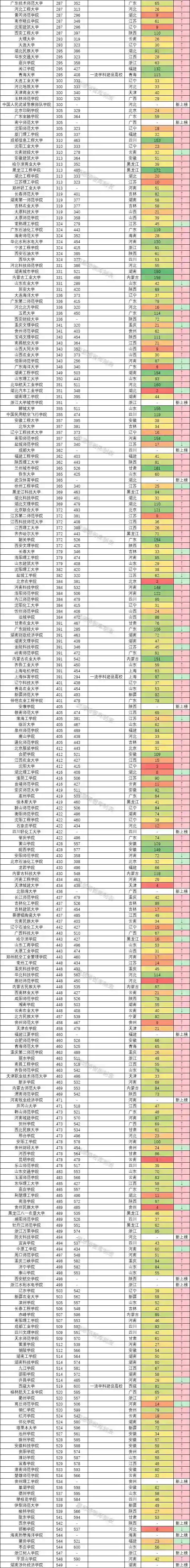 纵览榜单发现,今年的榜单整体情况是404所大学排名上升,数量占比达到了73.6%;105所大学排名下降,数量占比为19.1%;16所大学持平,数量占比为2.9%;另有24所新进大学,数量占比为4.4%。