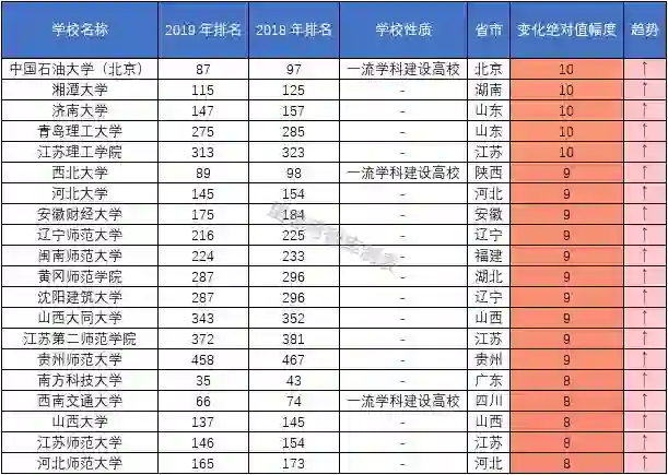 2. 排名上下浮动10位为相对稳定型大学