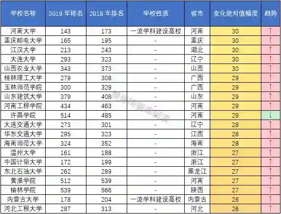 4. 排名上下浮动31位以上为明显波动型大学