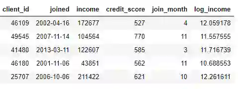 我们可以通过查找 joined 列的月份或对 income 列取自然对数来构造新特征。这些都属于“转换”操作,因为它们都只用了来自一张表的信息。
