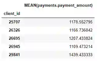 我们也有许多聚合基元,如每位客户的平均支付额: