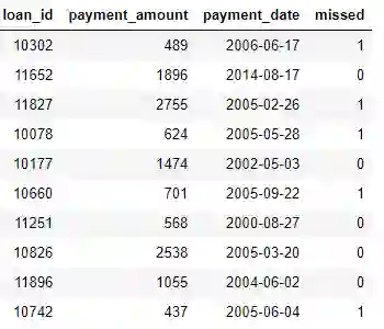 payments:还贷金额。每笔支付只对应一行数据,但每项贷款可能分多次支付。