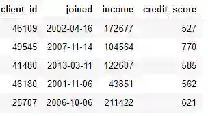 clients:关于一家信用社客户的基本信息。每位客户只对应表中的一行数据。