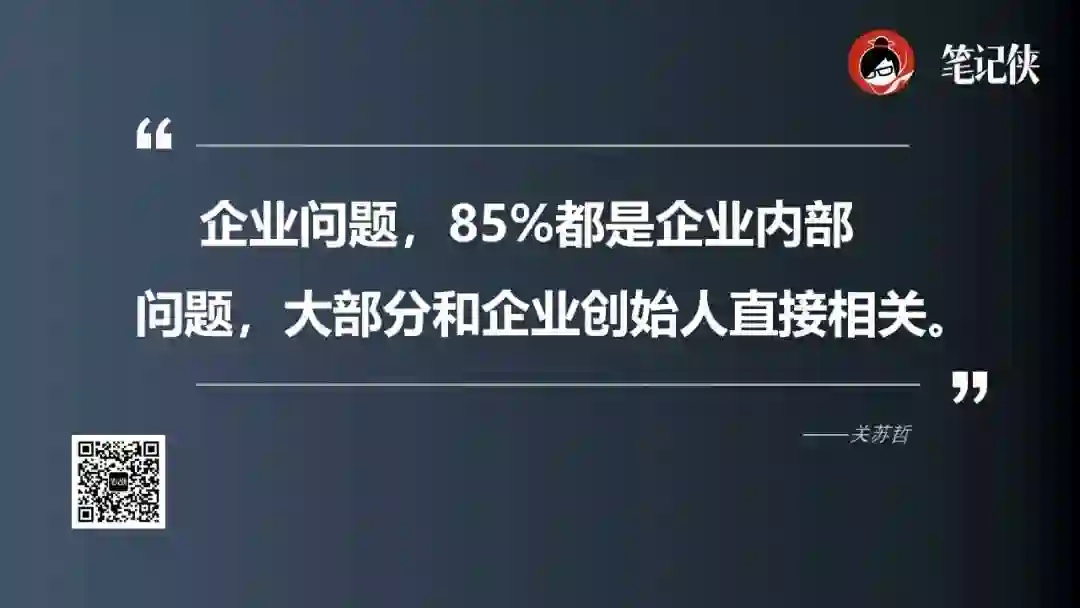 企业的问题,只有15%是外部环境造成的,85%都是企业内部问题,而企业内部这些问题大部分和企业创始人直接相关。