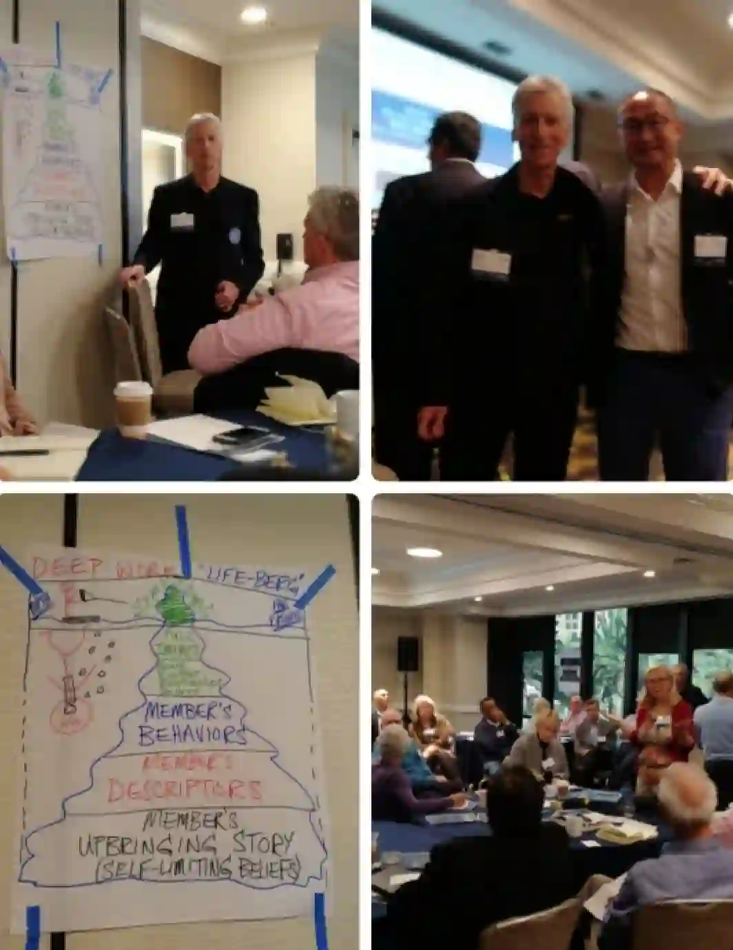 今年年初再去圣地亚哥培训,恰好有一场活动是伟事达最佳实践大师总裁教练Bob Dabic亲自作为引导教练,让世界各地的10多个教练模拟真实私董小组会上的私董CEO组员(很多教练其实都是自己企业的CEO),做了一场伟事达最核心的问题处理流程,而深挖问题的方法就是“冰山图”。