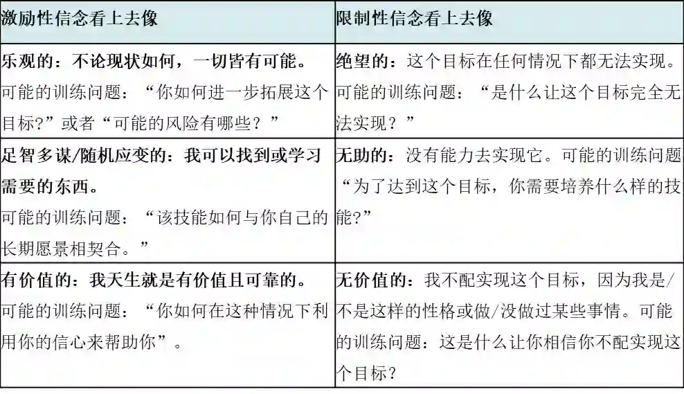 我们不是生来就带着限制性的信念;只是往往我们让自己表现出有这样一种信念,所以是有可能打破这一种局限性的信念,教练辅导主要是为了消除或者重构限制性的信念。