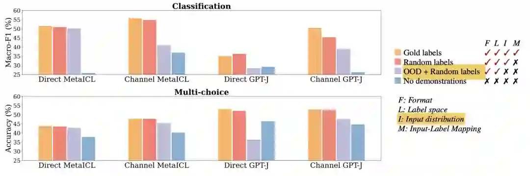 这篇文章的第二个结论是:in-context learning中,模型学到(激活)了输入数据、预测标签的分布,以及这种数据+label的语言表达形式。