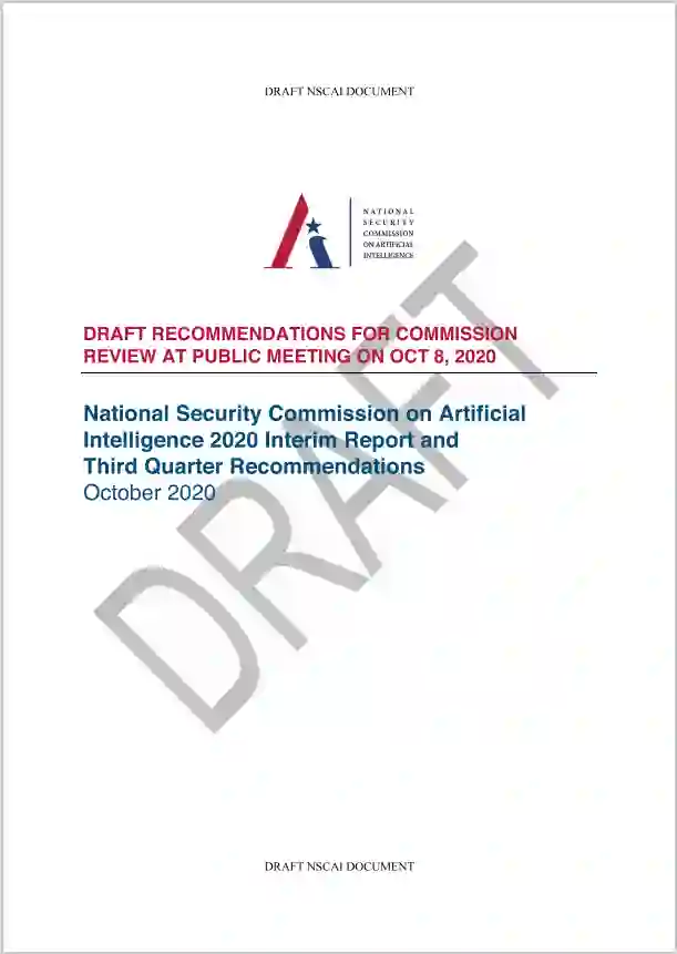 本文介绍美国家人工智能安全委员(NSCAI)发布的2020年年中报告以及提出的80项与人工智能相关的建议。