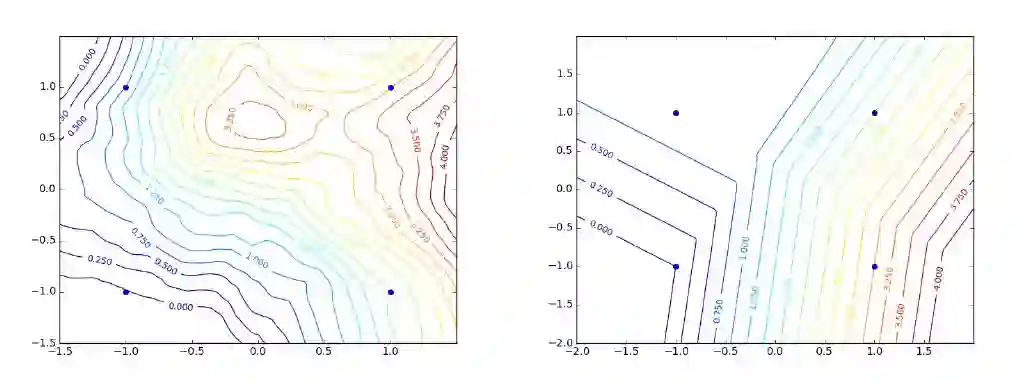 本文假设采用很小初始值和学习率,分析具有ReLU激活函数的前馈网络的这种行为,揭示了一种量化效应:权值向量趋于收敛于由输入数据确定的少量方向上。结果表明,对于给定的输入数据,可以获得的“简单”函数数量很有限,与网络规模无关。这使得这些函数类似于线性插值(对于给定的输入数据,存在有限数量的triangulation,每个triangulation通过线性插值来确定函数)。我们也在思考是否这种类比可以扩展到一般性质,虽然通常与分布无关的泛化性质不成立,但是对于例如具有有界二阶导数的平滑函数,近似性质(Approximation property)成立,其可以“解释”网络(无界大小)到不可见输入的泛化。