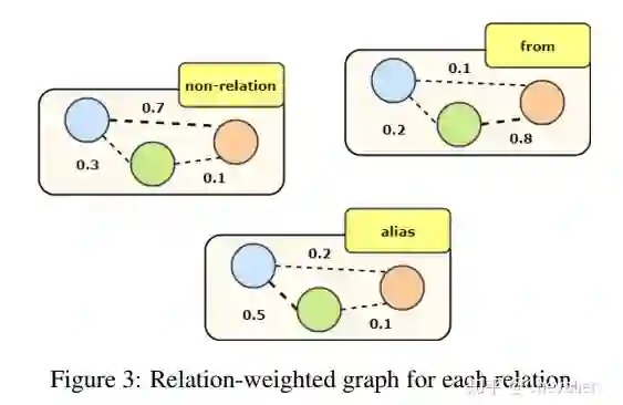 经过第一阶段的预测,我们构建了每种关系的关系加权图,图的节点是每个单词,边表示单词之间的关系概率。如图3所示。