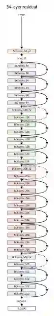 ResNet 结构图(图片来自于论文:《图像识别的深度残差学习》)