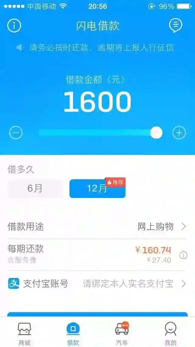 而张丹在输入学校宿舍楼的收件地址后,趣店直接批下1600元的借贷额度,大约三分钟后手机上的支付宝弹出一条消息:贷款到账。