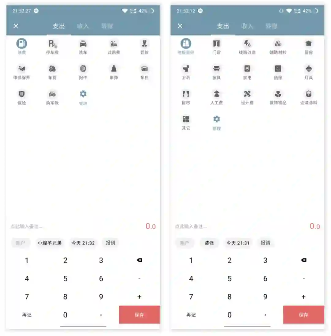 在实际记账过程中,不同用户对记账类目的需求也各不相同,比如我一般是没有「烟酒」「母婴」这类消费需求的,偶尔需要购买、记录,往往也是属于「人情往来」开销范畴当中。