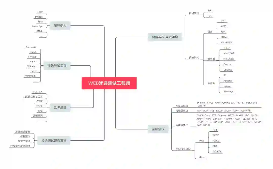 互联网的本质也就是一系列的网络协议,不管是C/S架构还是B/S架构都是基于网络通信,渗透人员需要了解到通信流程以及数据包走向等,才能使用相应手段跟工具去做渗透。