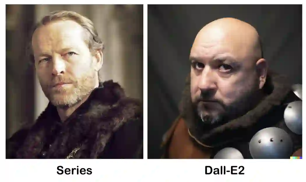 用 DALL·E 2 生成的《冰与火之歌》(被美国 HBO 电视网改编成了电视剧《权力的游戏》)中的各色人物