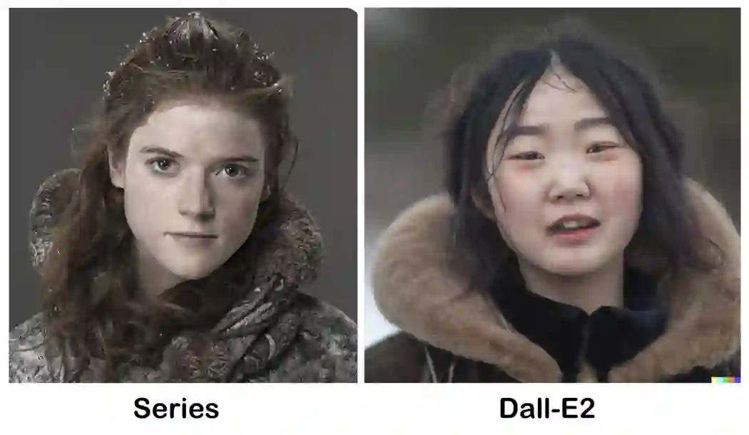龙妈、雪诺都还算正常,但 DALL·E 2 生成的女野人耶哥蕊特一言难尽……