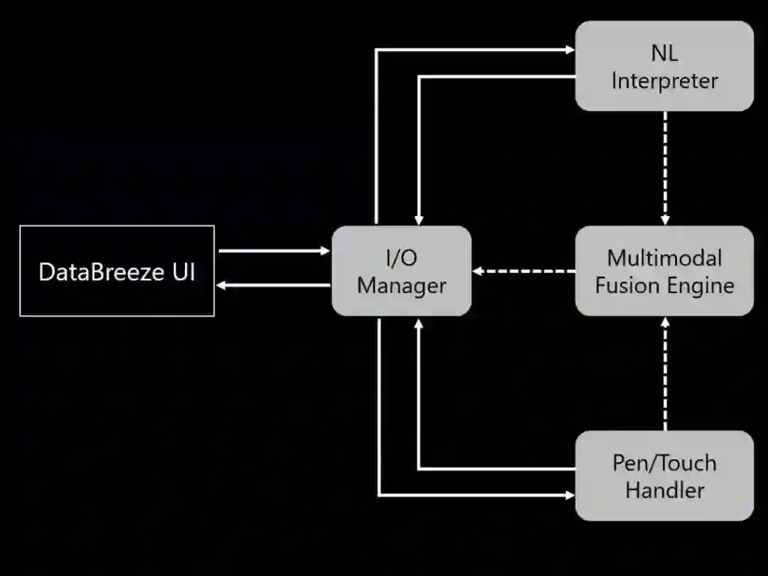 其次,Stasko教授针对“我们如何充分利用多模式交互的潜力,以实现更流畅、更自由的数据探索体验?”问题,向我们介绍了他的团队开发的“DataBreeze”程序,应用实例如图4。该程序将多模式交互与灵活的单元可视化有机结合,以实现更好的用户体验。并介绍了“DataBreeze”系统的简易结构,如图5所示。