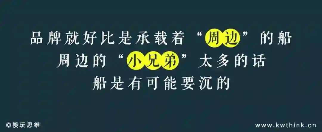 但是,任何品牌的信用都是有限度的。周边的品类繁杂,意味着品牌信用的透支。换句话说,品牌就好比是承载着“周边”的船,周边的“小兄弟”太多的话,船是有可能要沉的。