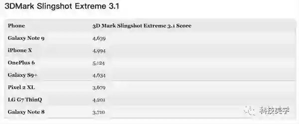 与此同时,在被称为“3DMark移动设备测试环境中最苛刻的图形测试之一”的Slingshot Extreme测试中,Galaxy Note9再次被其他机型赶超。这一次,一加6以5124分位居榜首,iPhone X以4994分位居第二,而Galaxy Note 9只有4639分,略高于S9+的4634分。