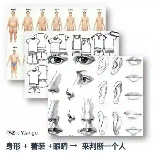 这时我们会靠单个五官,外加这个人的着装,