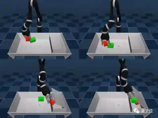 更一颗赛艇的是,现实世界的机械臂也能通过SAC-X来从0开始学习拾取和放置物体。这类研究非常富有挑战性,因为现实世界中的机器人要学习,需要极好的数据效率,所以通常会先在模拟环境中训练一个智能体,然后再将它迁移到真实的机械臂上。