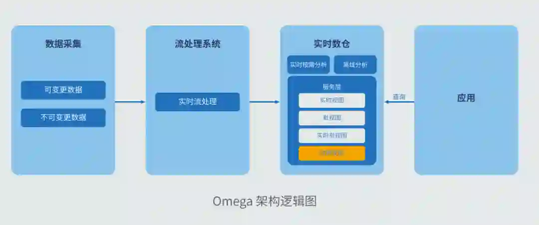 面对 Lambda 架构与 Kappa 架构的局限性,业内也亟需一种新型技术架构来满足企业的实时分析需求。为此,偶数科技在 2021 年初提出了同时满足实时流处理、实时按需分析以及离线分析的 Omega 架构,其是根据流数据处理系统和实时数仓构成的。