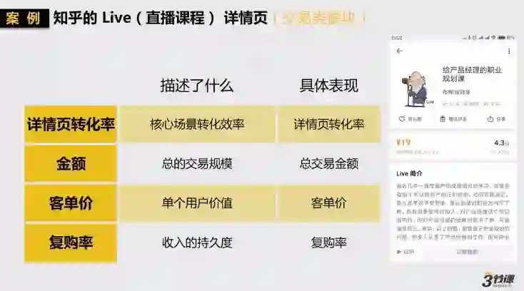 在「盐选会员」业务中,除了原知乎大学(知乎 Live)的私家课、Live、电子书等精选内容,还有关键词屏蔽、评论区发图等社区专属权益,这需要大家综合考量内容类业务模块和社区类业务模块的数据监控维度。