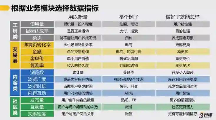 首先会带你实战拆解业务模块,根据业务模块进行判断,最后选取最能衡量业务的数据指标。(如下图)