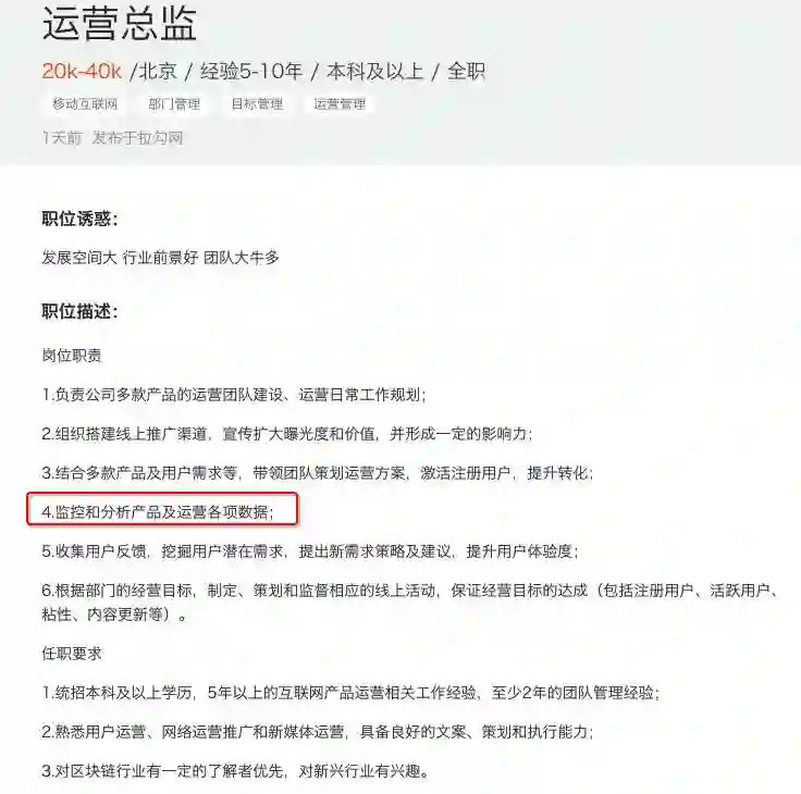 也因此,我们可以看到“业务数据分析能力”渐渐成为了月薪20K+高阶岗位的标配。无论是产品还是运营,都是如此。(可见下方招聘需求)