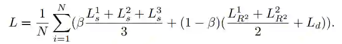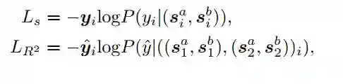 本文的方法不仅需要预测两个句子之间的语义关系,还需要预测两个句子对之间的语义关系是否相同,而且还要去优化对比学习的目标,因此作者使用了三个函数,并通过加权的形式将其整合起来。具体如下: