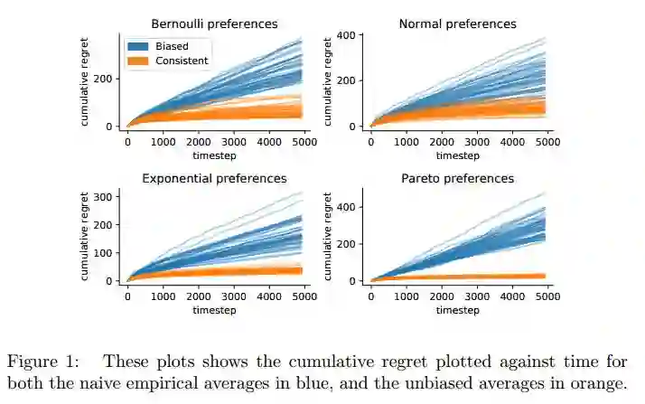 摘要:Many recommendation algorithms rely on user data to generate recommendations. However, these recommendations also affect the data obtained from future users. This work aims to understand the effects of this dynamic interaction. We propose a simple model where users with heterogeneous preferences arrive over time. Based on this model, we prove that naive estimators, i.e. those which ignore this feedback loop, are not consistent. We show that consistent estimators are efficient in the presence of myopic agents. Our results are validated using extensive simulations.