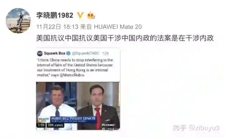 例如最近中美之间出现的这则有意思的表述,就集中反映了语言递归性:S1=”美国干涉中国内政“是一个拥有完整主谓宾结构的句子,被作为另外一个句子S2=”中国 抗议 x的法案“中”法案“的定语x;而S2又被作为了S3=”美国 抗议 y 是在干涉内政“中”抗议“的宾语y。