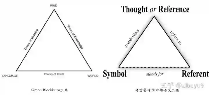 很多学者通过世界、心智和语言的三角形来表述语言的地位,这在索绪尔提出的能指和所指的概念中已初见端倪,哲学中的认识论和语言哲学也是探讨这三者的关系。自然语言理解还没有能力考虑哲学关心的这些问题,不过也能看出,语言作为人类认识世界的产物和工具,必然不是对客观世界的简单映射,而带有人类主观认识的色彩,也受到人脑机能的影响和约束。