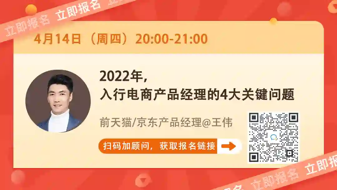 4月14日(周四)晚8点,前天猫/京东产品经理@王伟 老师,带你剖析电商产品经理的发展前景与工作要点,支招提升电商产品能力,助你高效系统入门电商产品经理!