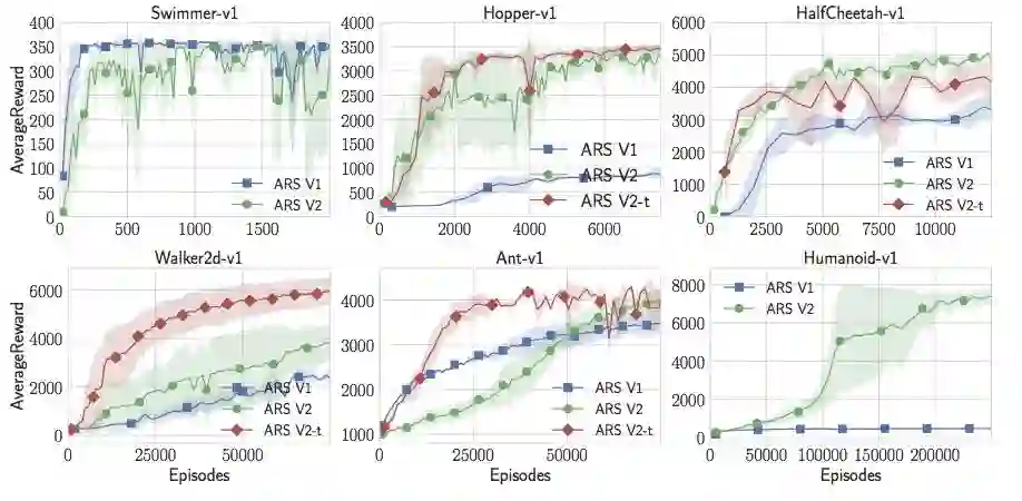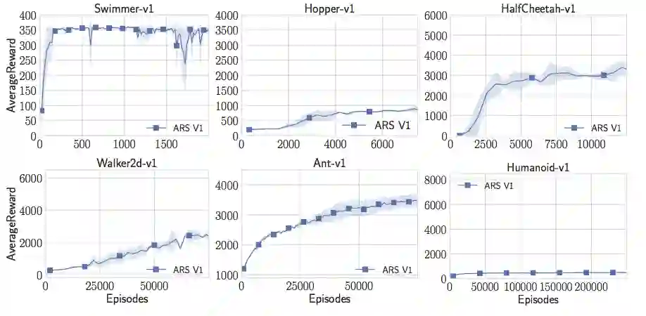 通过一些小调整得到的随机搜索结果胜过了MuJoCo任务中的所有其他方法,并且速度更快。论文和代码都已公布。