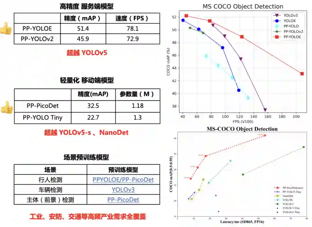 正因如此,YOLOv5、YOLOX、PP-YOLOE、PP-PicoDet等优秀算法层出不穷,各有优劣侧重。而在当前云、边、端多场景协同的产业大趋势下,运行速度、模型计算量、模型格式转化、硬件适配、统一部署方案等实际问题都需要考虑,到底该怎么选呢?