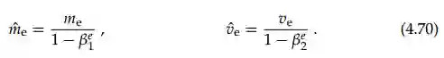其中β1 和 β2 参数通常可以分别设置为 0.9 和 0.999。但是 Adam 算法的稳健和强大可以保证整个学习过程极少依赖于它们的取值。为了避免第一次迭代陷入数值问题,该向量可以标准化为: