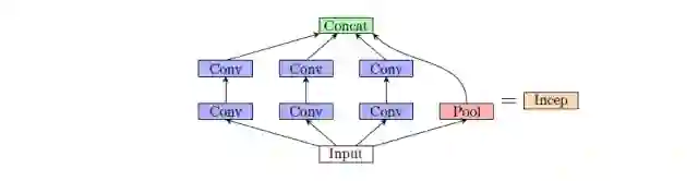 GoogleNet [18] 引入新型层(现有层的联结):inception 层(名字来自诺兰的电影《盗梦空间》)。GoogleNet 不通过简单的池化、卷积或全连接操作从 CNN 的一个层到达下一个层,而是平均下列架构的结果。