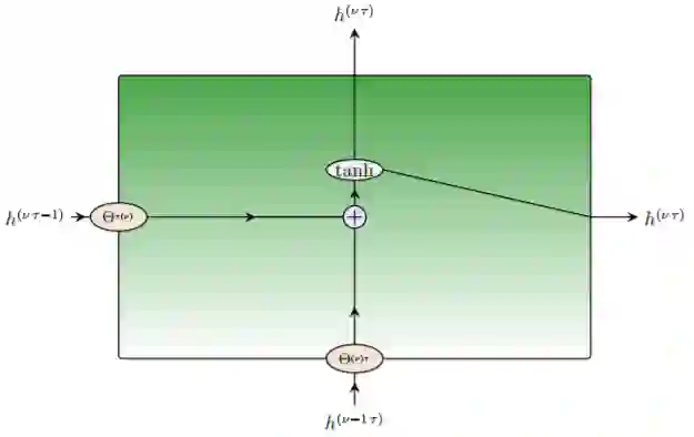 这种类型的神经网络真正的新颖之处在于,我们正试图预测时间序列会被编码进整个网络架构中。RNN 最开始被用于预测句子中的下一个单词(分类任务),即时间序列上的预测。但这种网络架构也可以被应用在回归问题中。可以首先想到的问题就是股价走势与温度预测。与之前介绍的神经网络(定义 v 表示之前层空间方向的索引)相反,