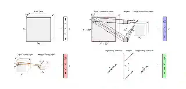 在FNN中,我们只需要计算两种反向传播:从输出到全连接层,以及从全连接到全连接。在传统CNN中,需要计算4种新的传播方式:全连接到池化、池化到卷积、卷积到卷积,以及卷积到池化。