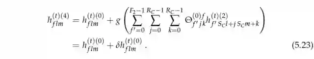 其中 v∈[0,N−1]、f∈[0,(F_v+1)−1]、t∈[0,(T_mb)− 1]。e 代表包括或排除一个偏置项,因为实践中我们经常使用批量归一化,所以 e 可以设为 0。