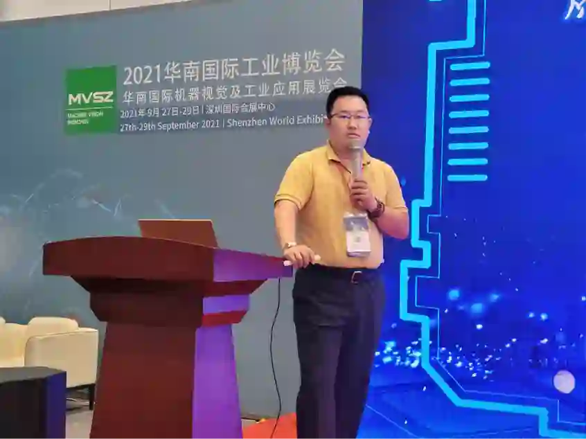北京微视新纪元科技有限公司的销售总监欧阳哲作了题为“AI工具在工业场景的落地应用”的报告。从传统工业视觉检测行业痛点入手,介绍了5G 技术和AI对于行业痛点问题的解决方案,最后和大家分享了5G+AI工具在工业场景的落地案例,包括5G工业相机和5G工业处理盒。