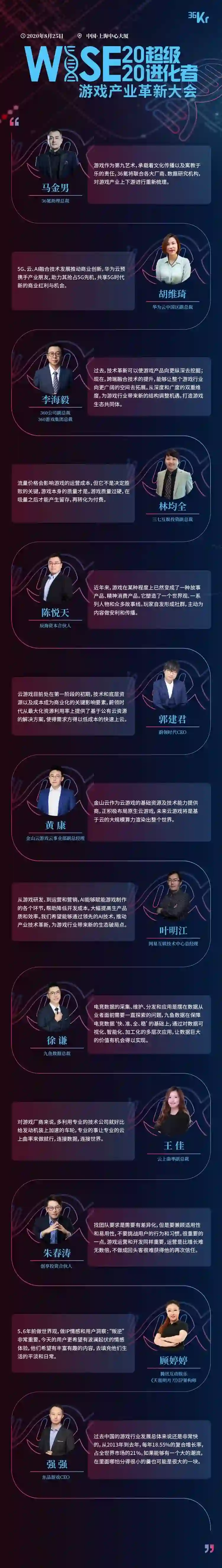 8月25日,WISE2020超级进化者大会在上海中心举行,主题为“游戏产业革新大会”的分会场吸引到了中国游戏及相关产业数百人参与。其中,演讲嘉宾来自于云游戏技术、游戏研发、游戏发行、游戏领域投资等多个相关行业,从游戏技术发展、游戏渠道与出海创新、精品游戏与电竞未来三个维度,阐述了各自的见解与看法。