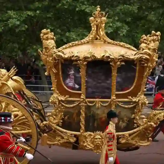 「王室金马车」于1670年被乔治三世订做。之后每任英王都在每次即位庆典上坐这车,在压轴巡行环节上前往威斯敏斯特大教堂。