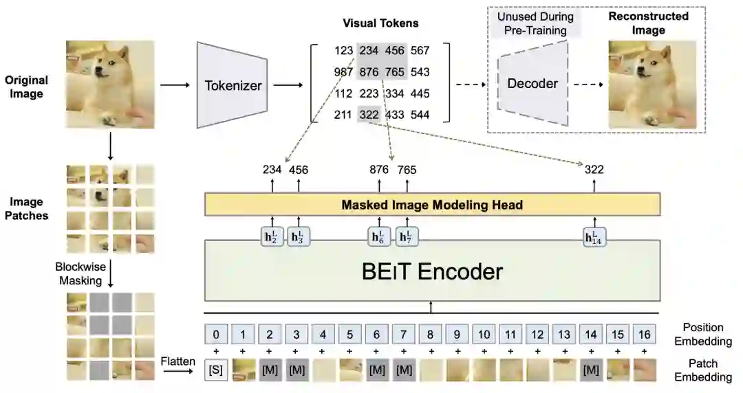 BEIT主要分为dVAE和基于Vision Transformer的MIM(Masked Image Modeling)两个部分